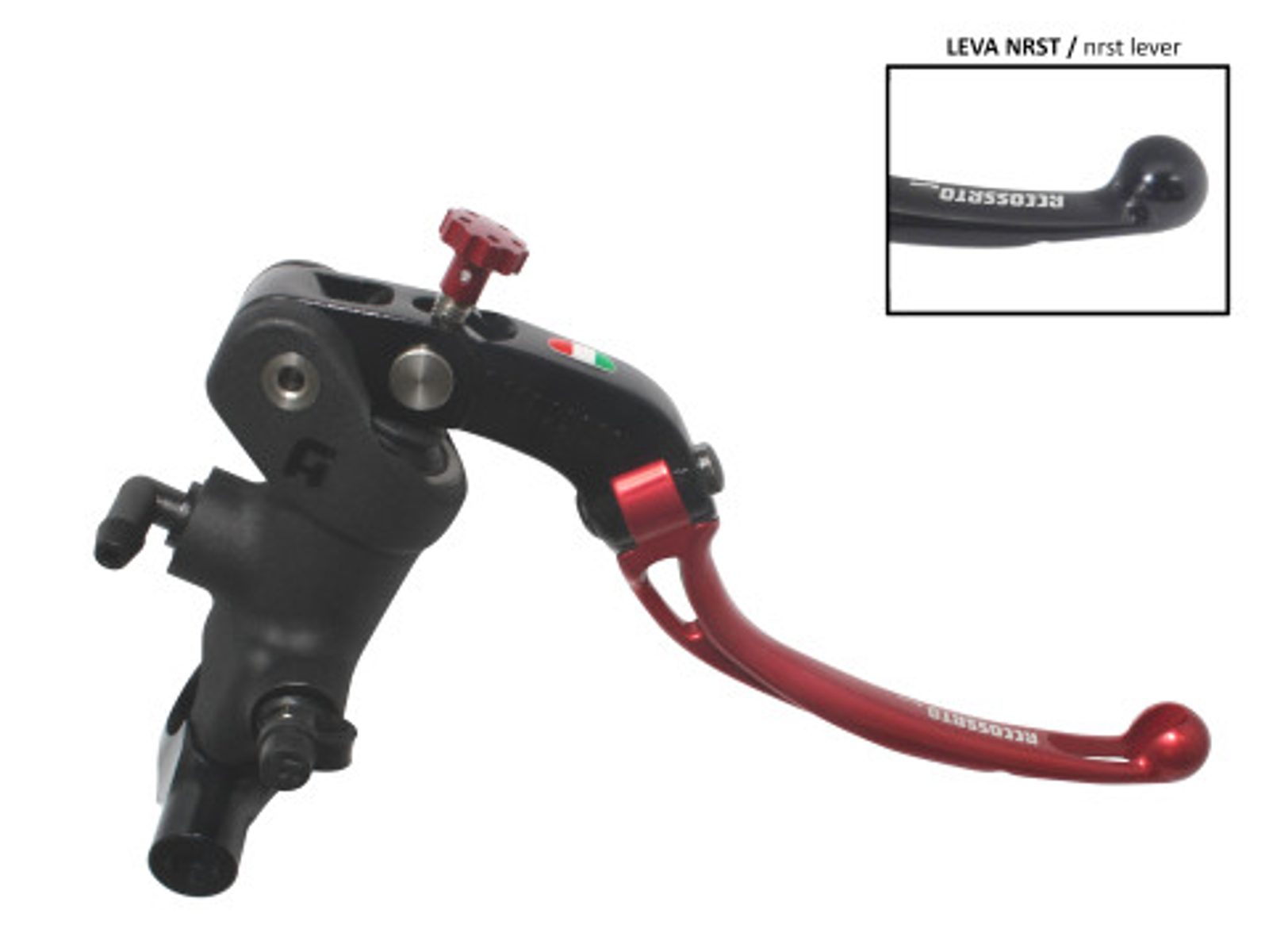 Radiální hlavní brzdový válec ACCOSSATO 19 x 18 se sklápěcí páčkou, červený