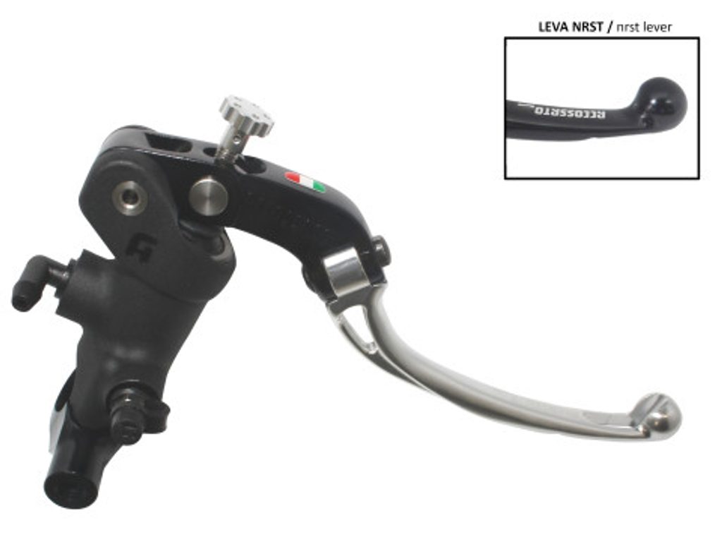 Accossato Radial Brake Master Cylinder For Motorcycles with 25,4mm diameter handlebarIn Forged Aluminium Black Anodyzing 19 x 19. The lever is colourf