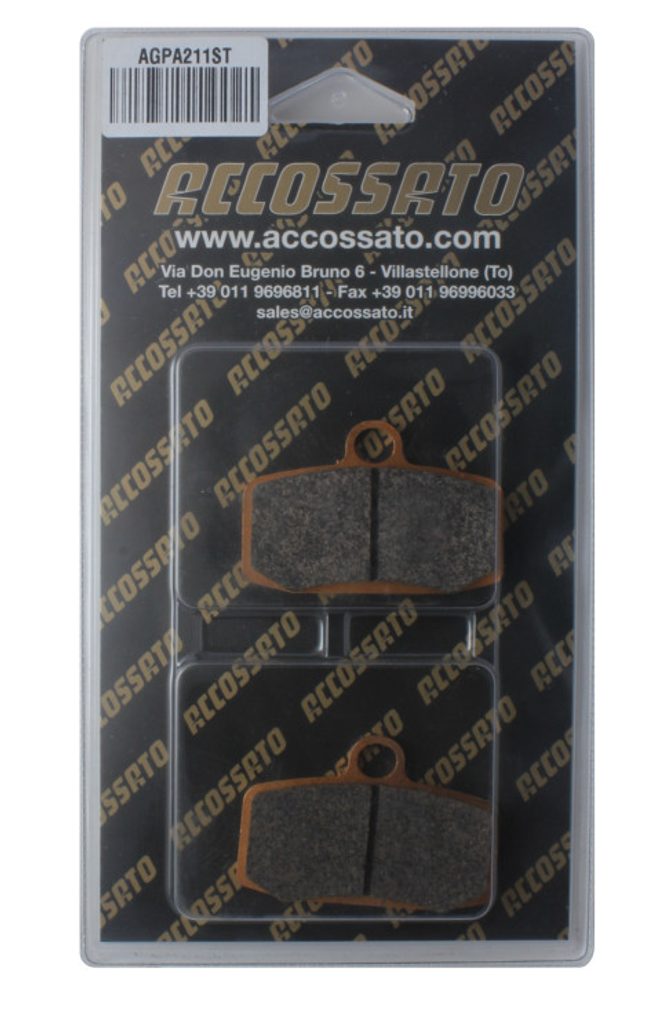 Accossato Brake Pad AGPA211 (dimensions 58.6x39.7x7.5). Brake pads kit available in SINTERED compound for guarantee a high and costant grip level at