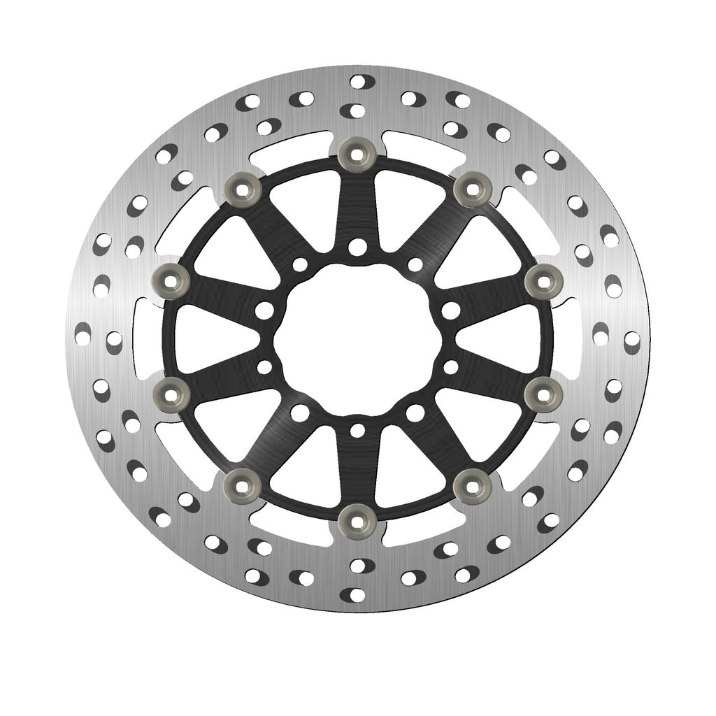 Barva brzdné plochy je výsledkem speciálního tepelného zpracování, které dodává oceli toto charakteristické duhové zbarvení, díky němuž bude váš stroj vynikat mezi ostatními. Chladící otvory nejsou orientovány vertikálně, ale horizontálně a jsou uspořádány ve skupinách po třech v každém směru. Ventilační otvory společně se speciálním tepelným zpracováním zabraňují přehřátí materiálu, které by mohlo vést k deformaci kotouče.