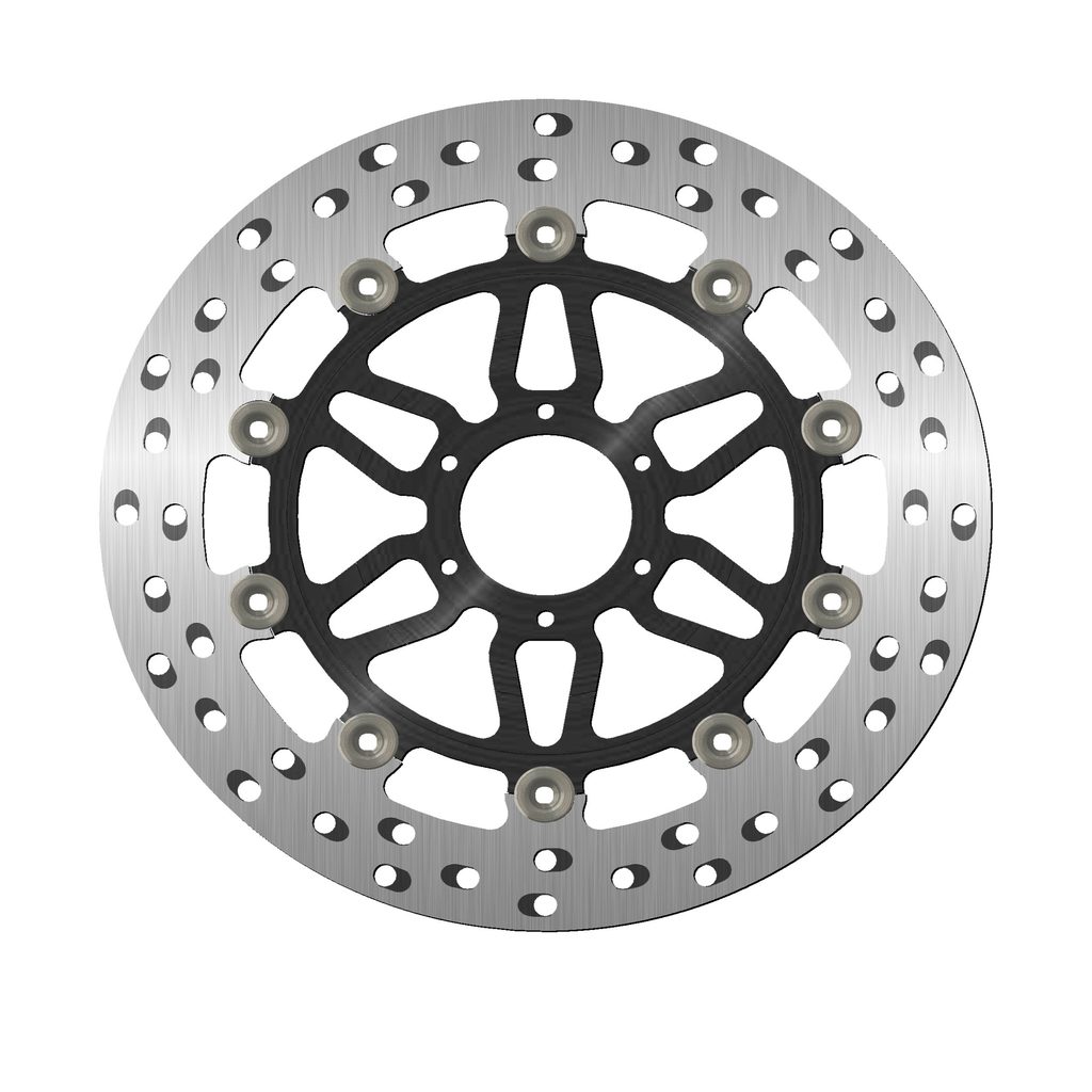 Barva brzdné plochy je výsledkem speciálního tepelného zpracování, které dodává oceli toto charakteristické duhové zbarvení, díky němuž bude váš stroj vynikat mezi ostatními. Chladící otvory nejsou orientovány vertikálně, ale horizontálně a jsou uspořádány ve skupinách po třech v každém směru. Ventilační otvory společně se speciálním tepelným zpracováním zabraňují přehřátí materiálu, které by mohlo vést k deformaci kotouče.