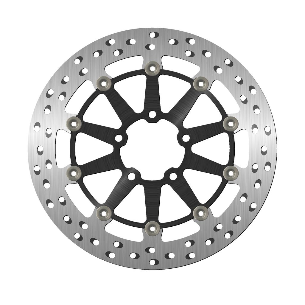 Barva brzdné plochy je výsledkem speciálního tepelného zpracování, které dodává oceli toto charakteristické duhové zbarvení, díky němuž bude váš stroj vynikat mezi ostatními. Chladící otvory nejsou orientovány vertikálně, ale horizontálně a jsou uspořádány ve skupinách po třech v každém směru. Ventilační otvory společně se speciálním tepelným zpracováním zabraňují přehřátí materiálu, které by mohlo vést k deformaci kotouče.