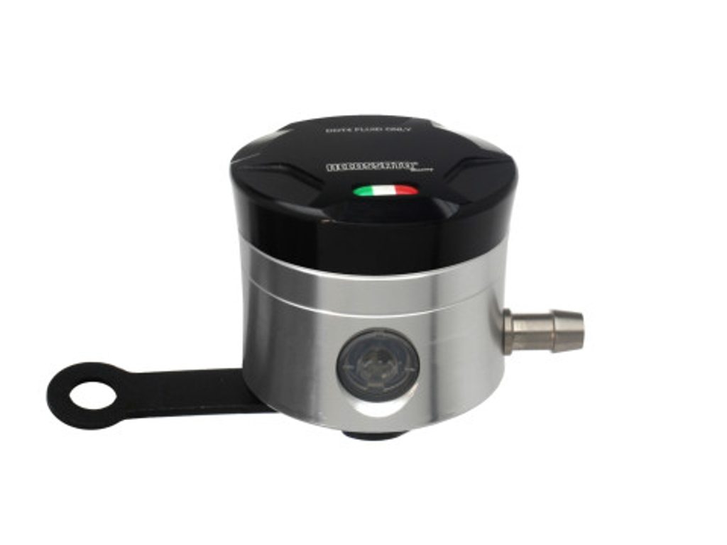Accossato CNC-worked brake fluid reservoir, capacity of 25 cm3, horizontal oil spill. Straight braket provided. You can choose the colour match of the