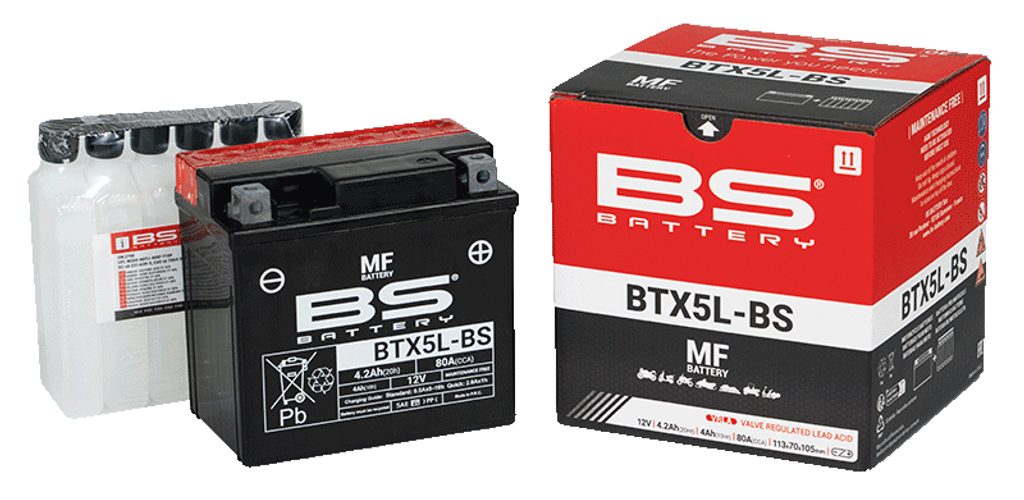 Baterie BTX5L-BS je součástí naší bezúdržbové MF řady. Tato 12V 4.2Ah baterie se dodává s balením elektrolytu (kyseliny) a před prvním použitím je nutné ji aktivovat nalitím kyseliny.