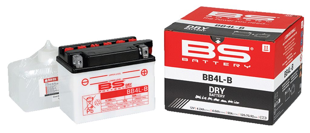 Baterie BB4L-B je součástí naší řady DRY (suché baterie). Je speciálně navržena tak, aby nabízela dobrý výkon a spolehlivost. Tato 12V 4.2Ah baterie je dodávána s balením elektrolytu (kyseliny), které je nutné použít při aktivaci baterie před prvním použitím. Baterie vyžaduje pravidelnou kontrolu stavu.