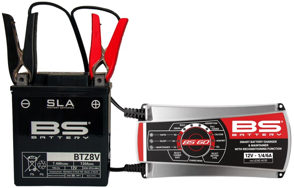 BS Battery Charger BS 60 je chytrá nabíječka a udržovací zařízení pro 12V olověné baterie s volitelným nabíjecím proudem 1 A / 4 A / 6 A. Je vhodná pro akumulátory s kapacitou až 120 Ah.
