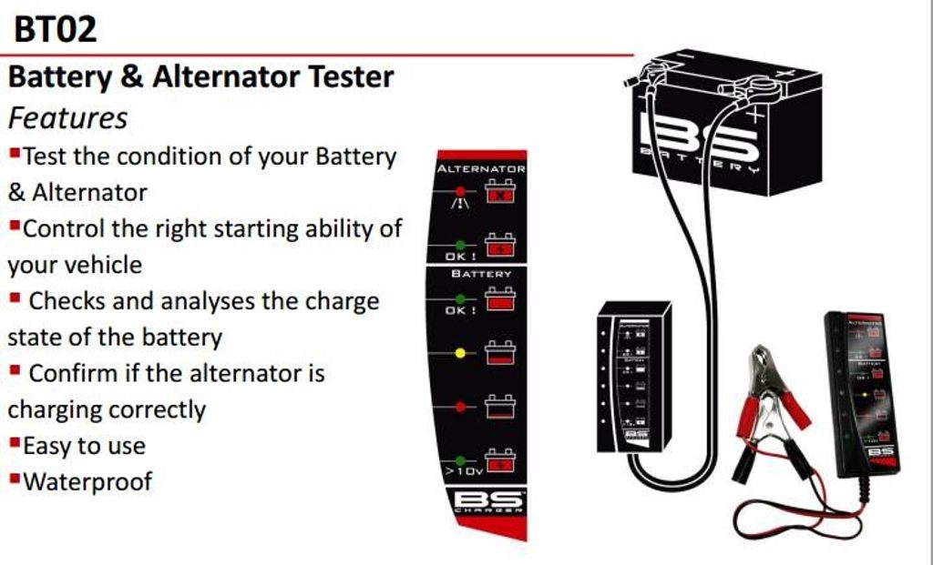 BT 02 je tester baterií a alternátorů navržený pro rychlou diagnostiku elektrických problémů. Poskytuje okamžitý výsledek a díky plně automatickému provedení jej nelze používat nesprávně.