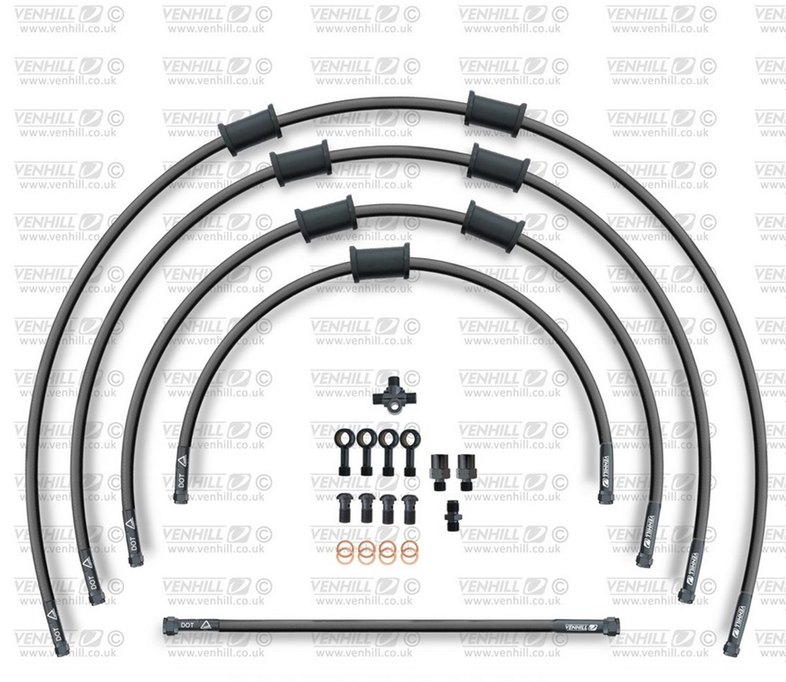 STANDARD Hadice přední brzdy sada Venhill POWERHOSEPLUS KAW-11006FB-BK (3 hadice v sadě) černé hadice, černé koncovky