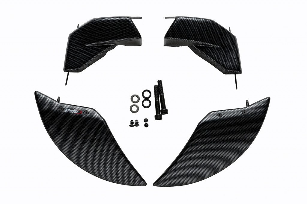 Brzdový chladič Brake Cooler 2.0 je vyroben s využitím nejmodernějších technologií lisování plastů a obsahuje dva chladicí kanály, které efektivně směrují vzduch přímo na brzdové třmeny. Jeho nerezové držáky jsou lehké, ale zároveň pevné, s elegantní strukturovanou černou povrchovou úpravou, která dokonale ladí se sportovním vzhledem motocyklu.