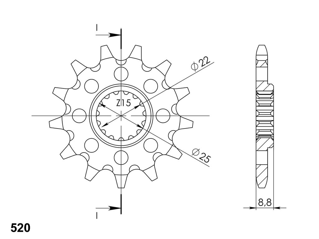 Pevnější zuby = vyšší životnost řetězové sady až o 10%. Kolečko 17z, řetěz 520. Více informací