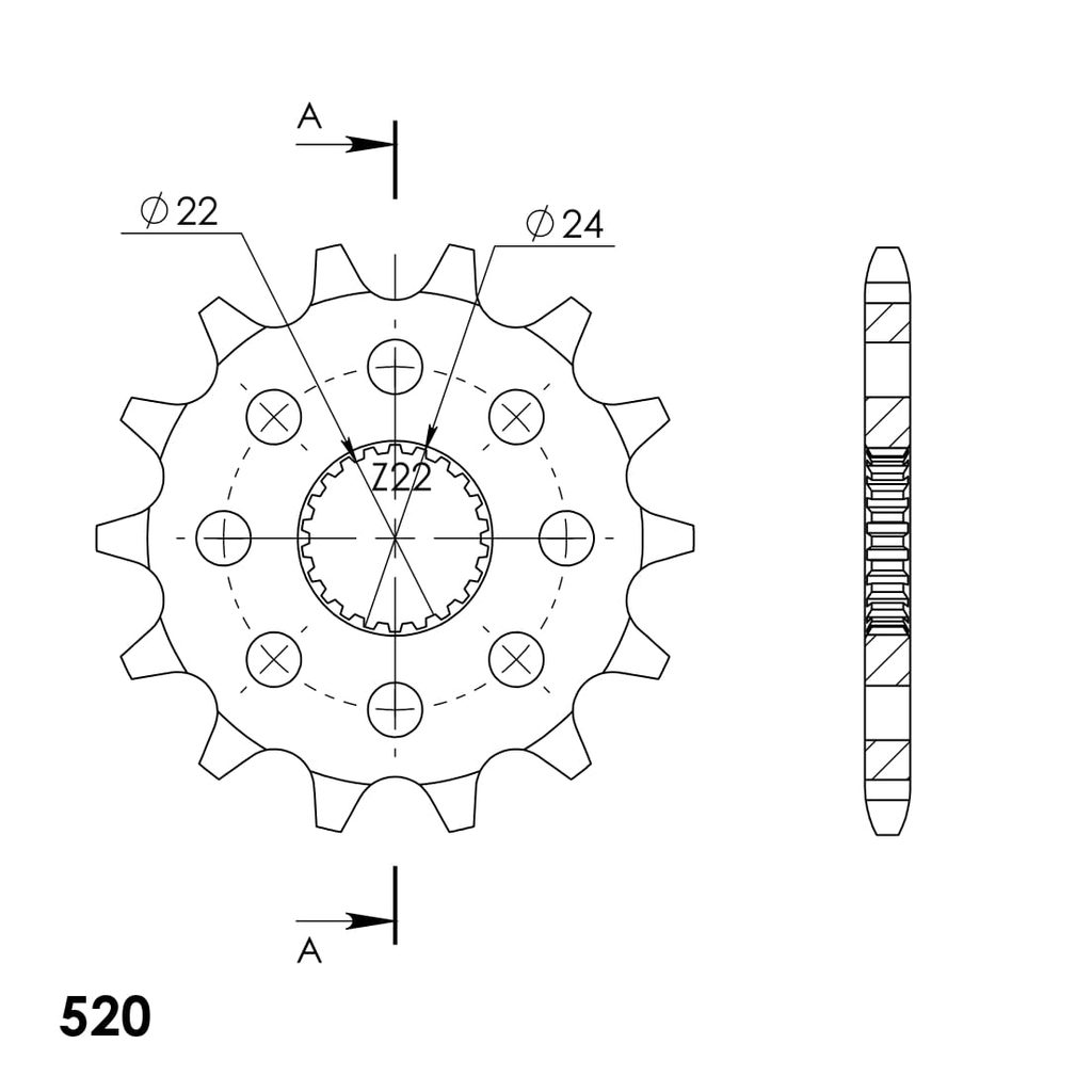 Pevnější zuby = vyšší životnost řetězové sady až o 10%. Kolečko 14z, řetěz 520. Více informací