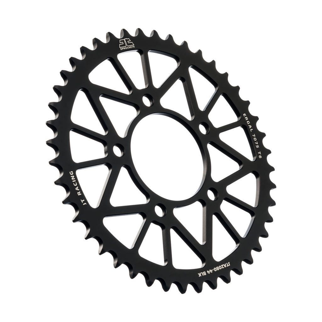 JT používá výhradně ty nejkvalitnější materiály. Pro závodní lehké rozety je to hliníková slitina letecké kvality 7075-T6, pro přední pastorky extrémně pevná slitina SCM420 (chrom-molybdenová ocel) a pro zadní ocelové rozety jako jediný výrobce používá ultra odolnou uhlíkovou ocel C49.