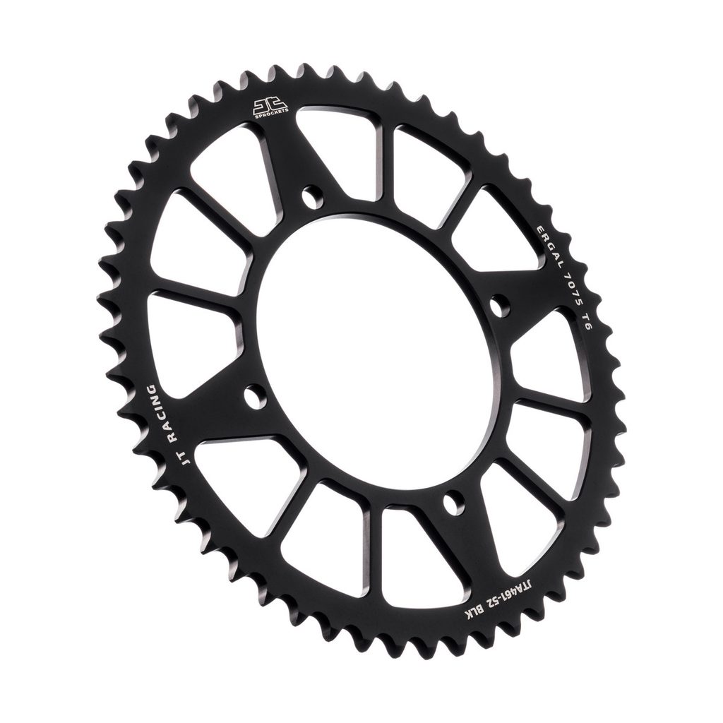 JT používá výhradně ty nejkvalitnější materiály. Pro závodní lehké rozety je to hliníková slitina letecké kvality 7075-T6, pro přední pastorky extrémně pevná slitina SCM420 (chrom-molybdenová ocel) a pro zadní ocelové rozety jako jediný výrobce používá ultra odolnou uhlíkovou ocel C49.