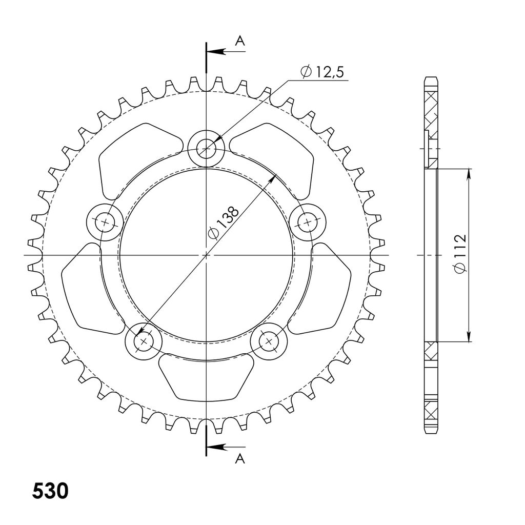 Hliníková řetězová rozeta SUPERSPROX RAL-302:44-BLK černý 44 zubů, 530