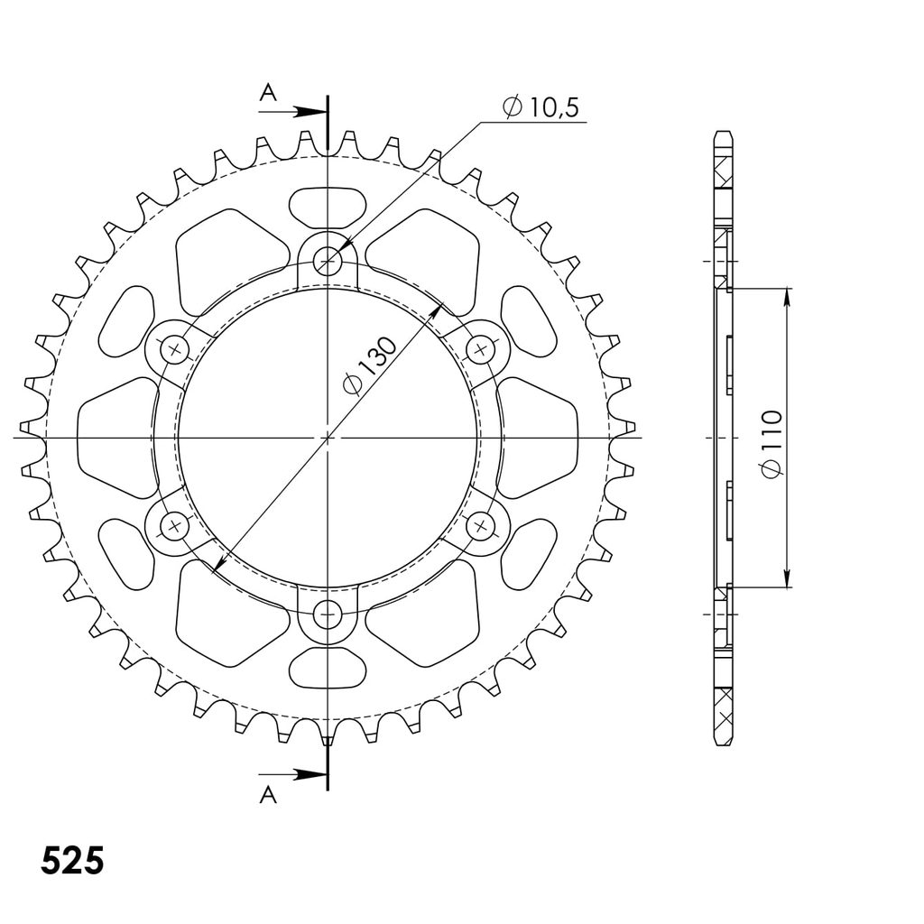 Hliníková řetězová rozeta SUPERSPROX RAL-480:43-BLK černý 43 zubů, 525