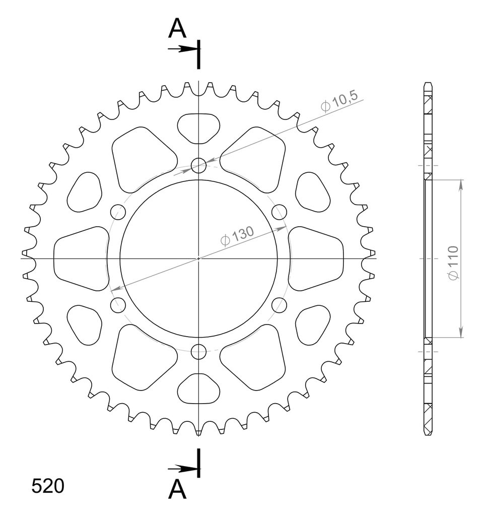 Hliníková řetězová rozeta SUPERSPROX RAL-486:47-BLK černý 47 zubů, 520