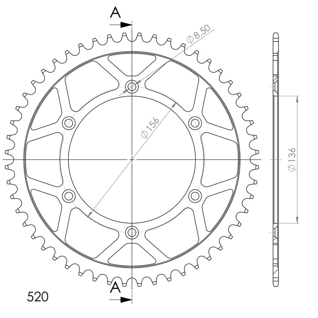 Řetězová rozeta SUPERSPROX RFE-1512:52-BLK černý 52 zubů, 520
