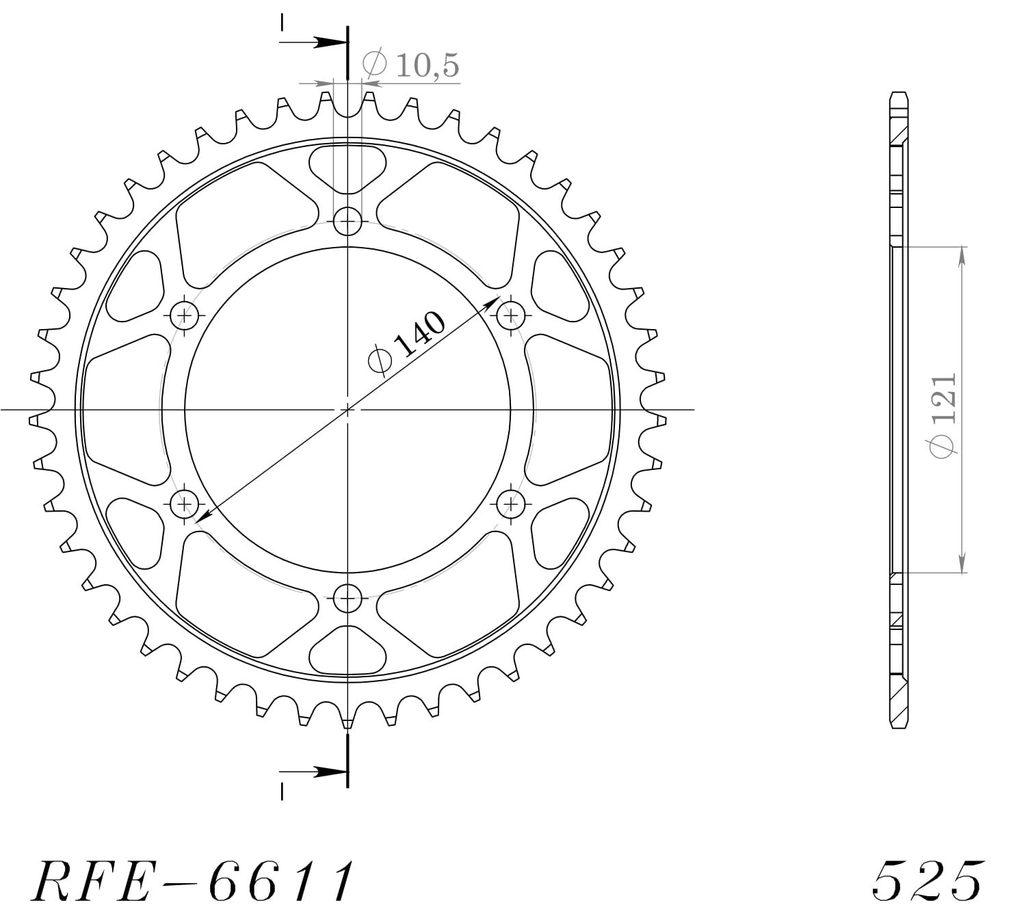 Řetězová rozeta SUPERSPROX RFE-6611:45-BLK černý 45 zubů, 525