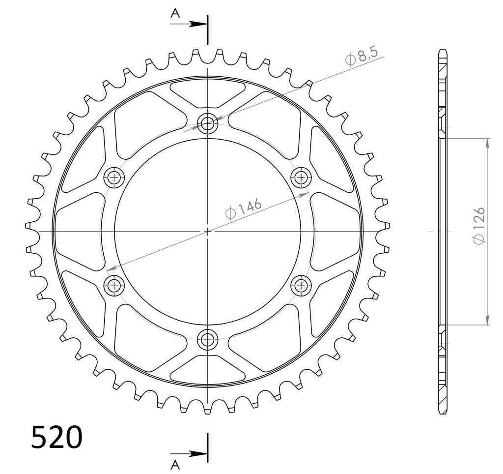 Pevnější zuby = vyšší životnost řetězové sady až o 10%. Rozeta 47z, řetěz 520. Více informací