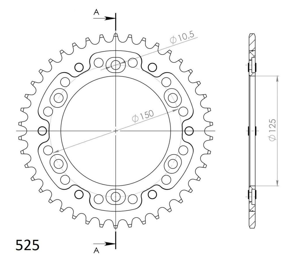 Řetězová rozeta SUPERSPROX STEALTH RST-899:42-SLV stříbrná 42 zubů, 525