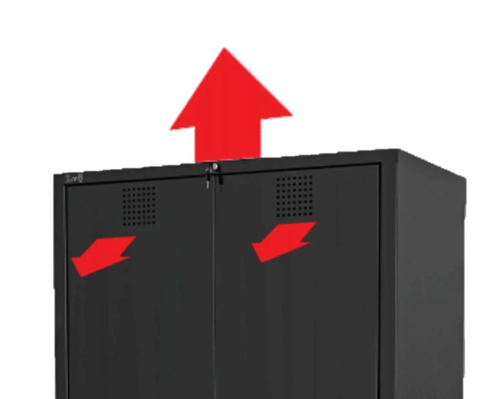 Ventilační otvory pro cirkulaci vzduchu umístěné na zadní stěně a na dveřích skříně.
