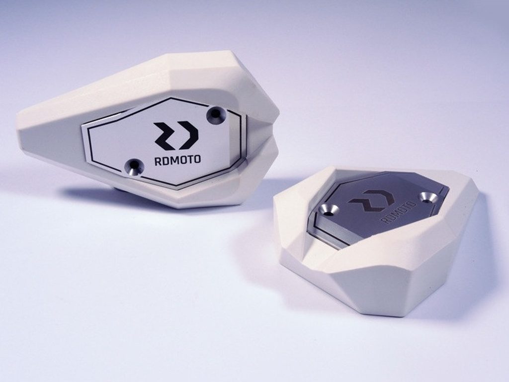 Padací slidery RDMOTO KTM13N bílý polyamid se stříbrnými krytkami