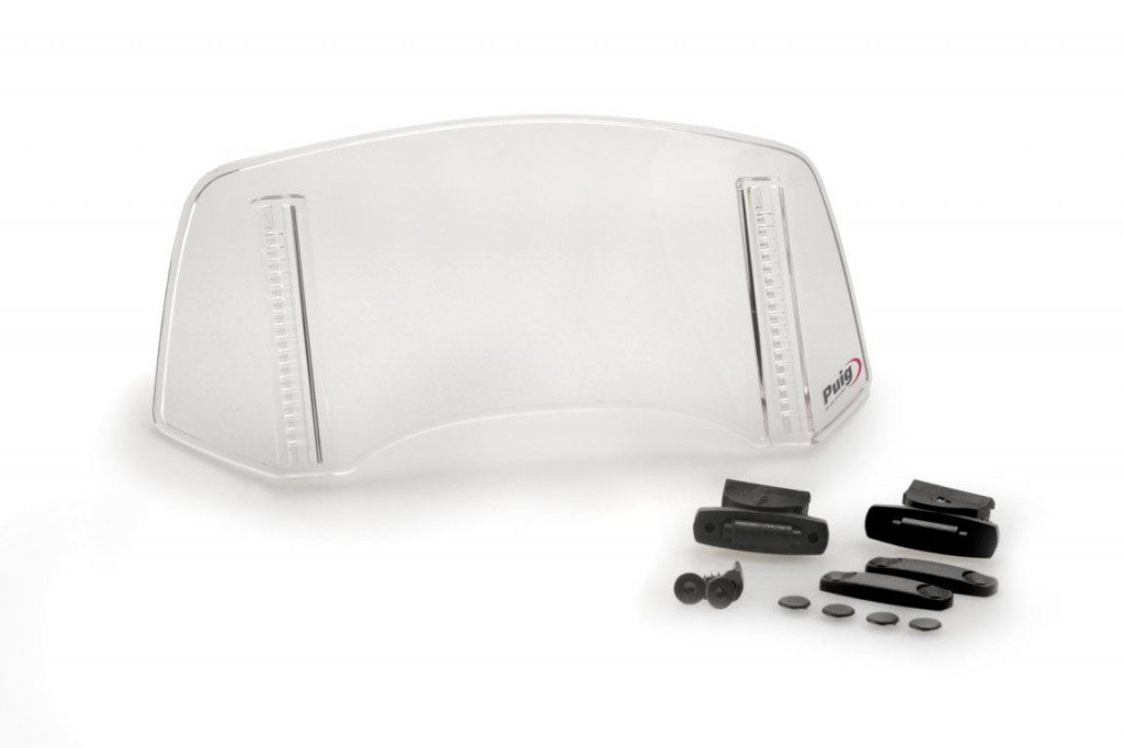 Stavitelné přídavné plexi PUIG vyrobeno podle nejnovějších technologií ze vstřikovaného polykarbonátu s úpravou proti poškrábání, vysokou průhledností a maximální odolností vůči možným nárazům.