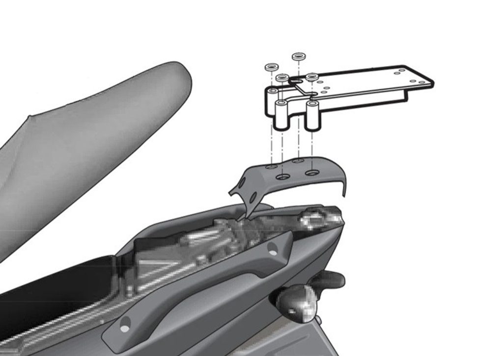 K upevnění vrchního kufru SHAD na motorku stačí namontovat tuto montážní sadu, plotna je vždy součástí kufru (kromě kufrů TR48/TR37).