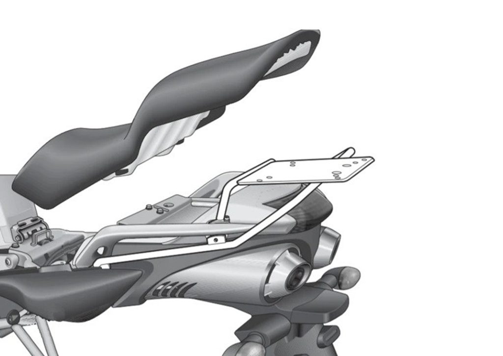 K upevnění vrchního kufru SHAD na motorku stačí namontovat tuto montážní sadu, plotna je vždy součástí kufru (kromě kufrů TR48/TR37).