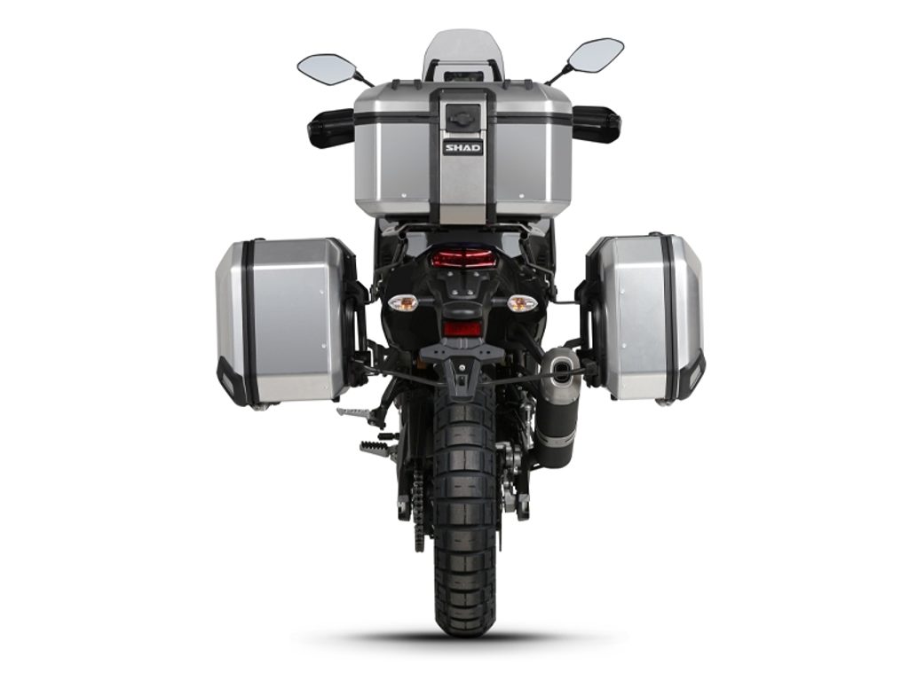 Kompletní sada černých hliníkových kufrů SHAD Terra obsahuje černý vrchní kufr TR48 s kapacitou 48L včetně plotny, levý černý hliníkový kufr TR47 s kapacitou 47L a pravý černý hliníkový kufr TR36 s kapacitou 36L kvůli umístění výfuku. Pravý kufr tak nebude vyčnívat. Sada obsahuje vše, co potřebujete k montáži obou kufrů.