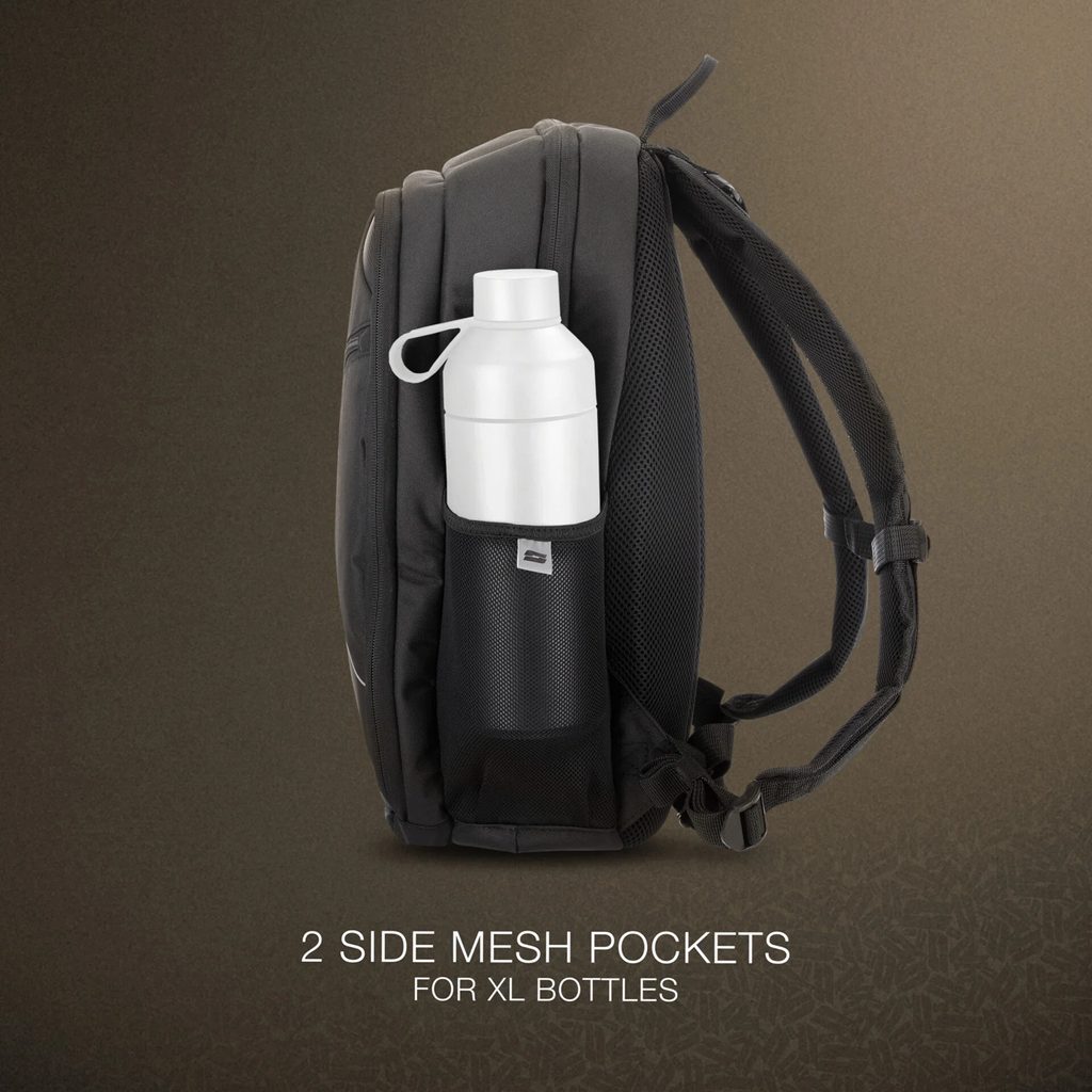 • 2 boční síťované kapsy s elastickým lemem na láhve