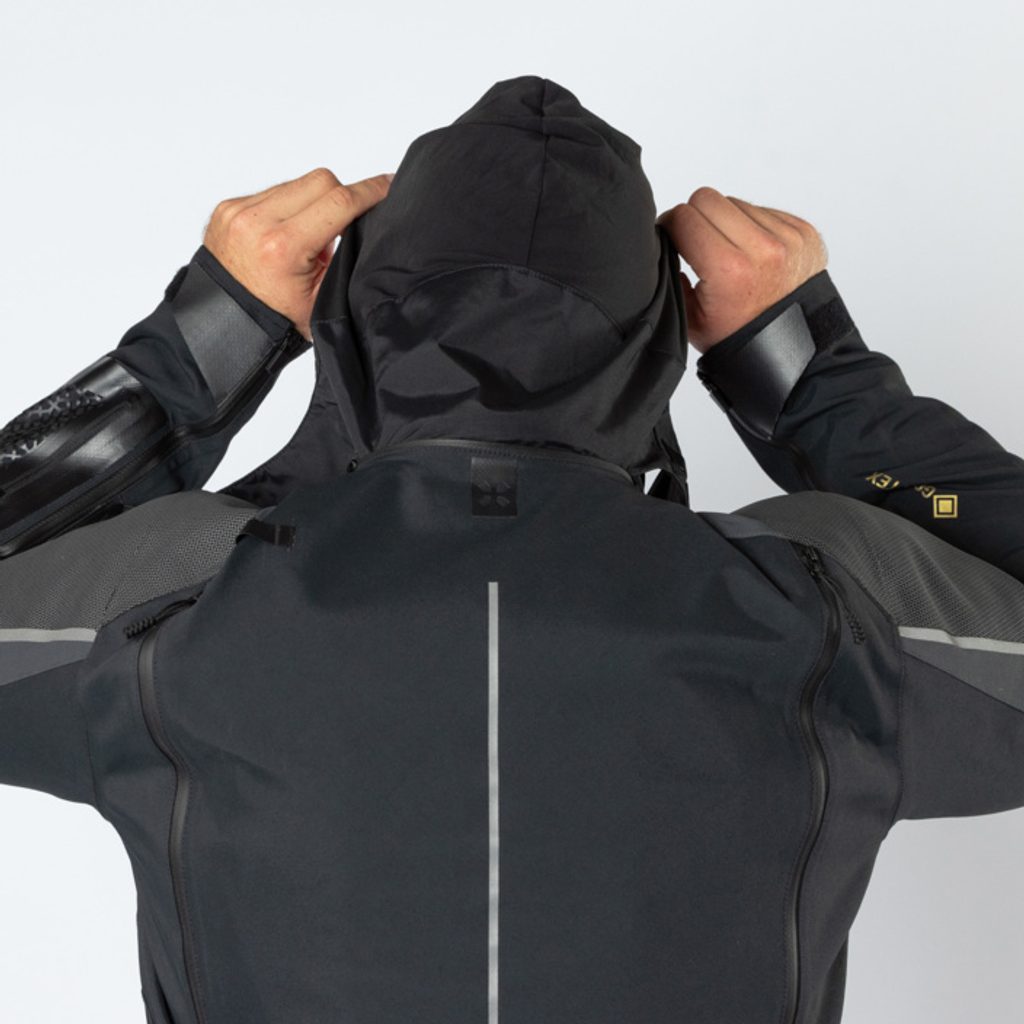 Abychom vytvořili co nejlépší ochranný štít pro vaši jízdu, vyrobili jsme tento kousek plně voděodolný, větruodolný a prodyšný pomocí dvouvrstvého vnějšího materiálu GORE-TEX® s podlepenými švy a přidali jsme oděruvzdorné výztuhy SuperFabric® na ramenou a loktech.