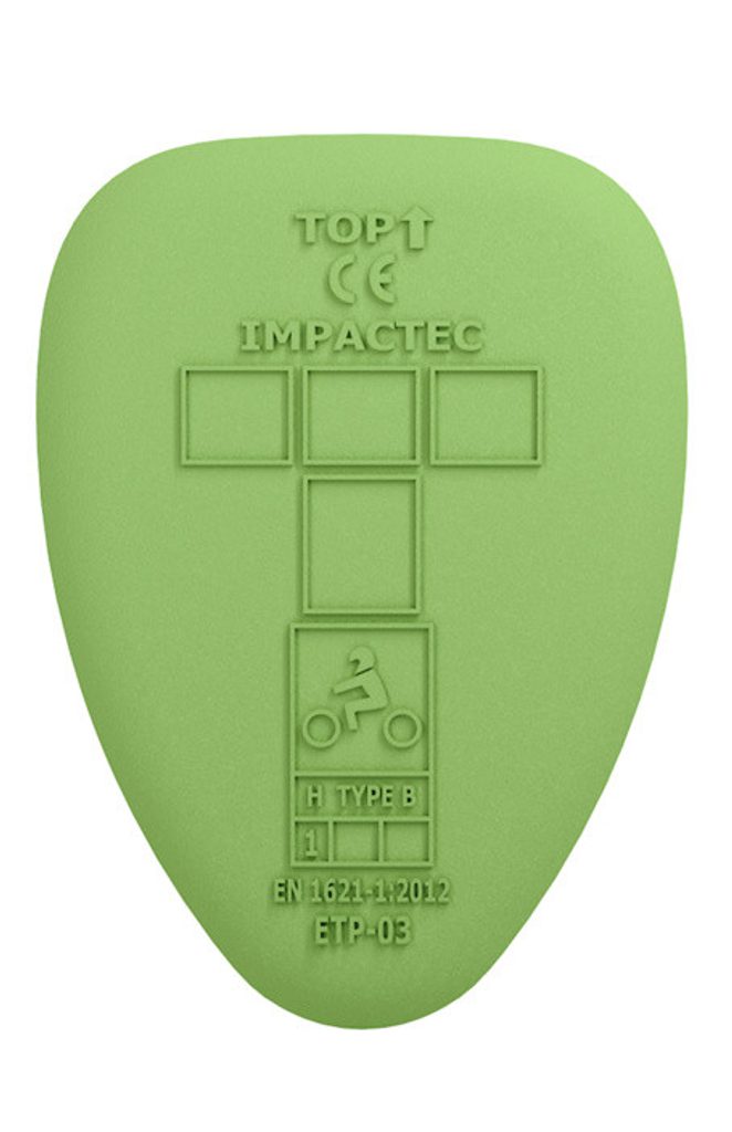 Kyčelní chránič typu B vyrobený z nerozbitného polyuretanu.