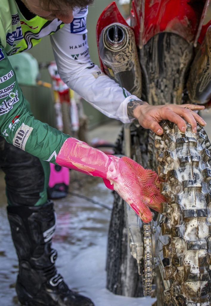 Tyto rukavice jsou vyrobeny z odolného a vysoce pevného silikonu a díky nim je čištění špatně dostupných míst rychlejší a snadnější než kdykoli předtím. Díky pružným štětinám, které pokrývají dlaň a každý prst, vyčistíte kolo nebo motorku rychle a efektivně.