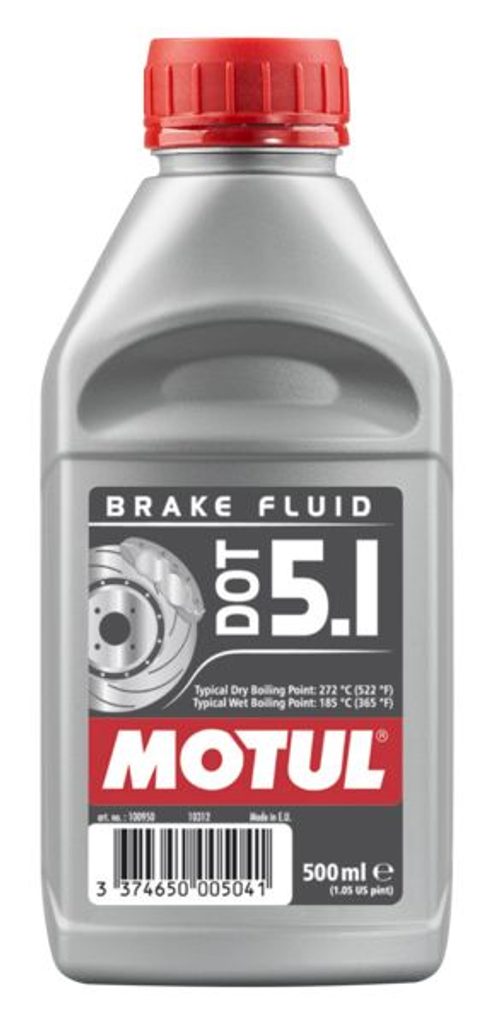 Brzdová kapalina DOT4; DOT5.1 (0,5L) [suchý: 272°C, mokrý: 185°C, viskozita: 820mm²/s] SAE J1703, ISO/DIN 4925;FMVSS 116 DOT3; FMVSS 116 DOT4,